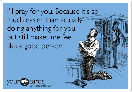 U.S. Christians are a lazy, passive, well-intentioned bunch. I am not talking about the 11% who are engaged in some form of regular hands-on ministry. I am speaking of the 89% who define “active” faith as attending church when convenient, showing up at an occasional potluck supper, buying the doo-dad-du jour from the youth group, or who toss a few bucks in the offering plate so that somebody else can do ministry for them. This is the group for whom faith is about “feelings” more than behaviors. 69% of active church-goers have never been on a mission trip or even a one day mission project — yet most are very proud of the mission work of their congregation. Living the faith by a few degrees of separation. I know, whenever I bring this up, people tell me I am being unrealistic to think that people’s actions will reflect their core values and beliefs. Actually, I DO think our actions belie our true beliefs and values — this is the problem.